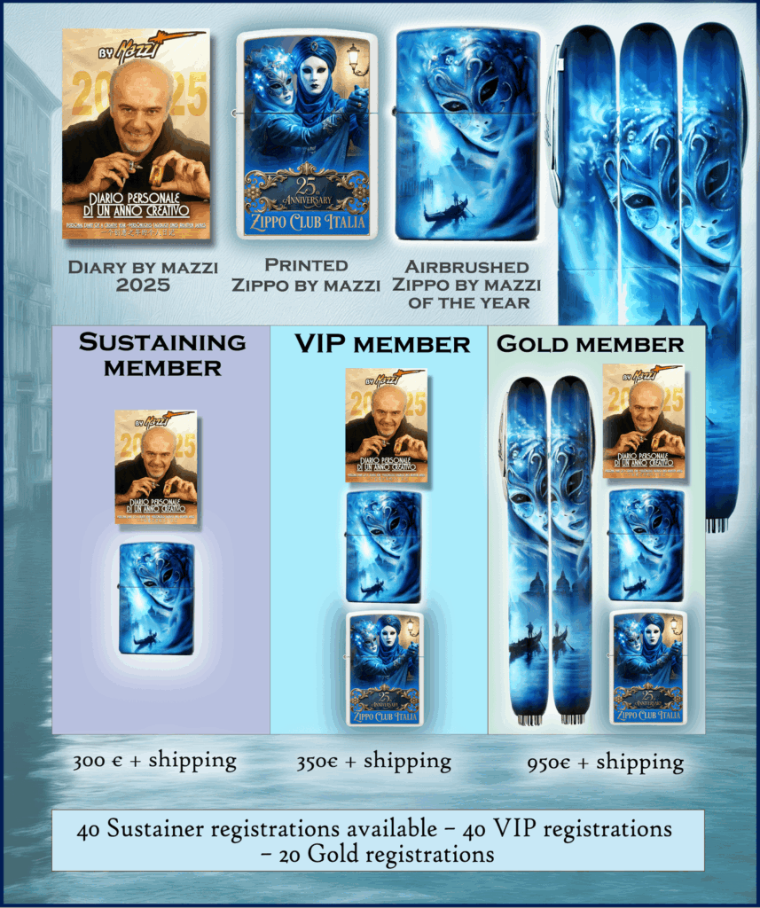 To join the Club, please send an email to info@zippoclubitalia.it, including your first and last name, phone number, email address, residential address and the selected membership type.